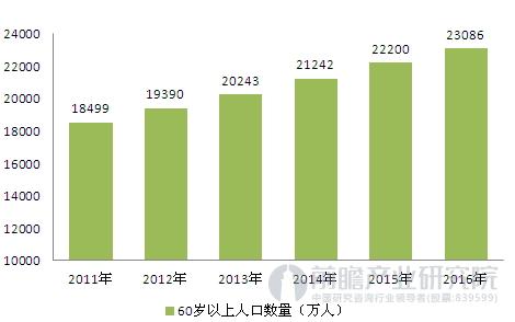 圖表1:2011-2016年我國60歲以上人口數量(單位:萬(wàn)人)